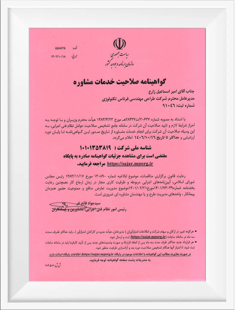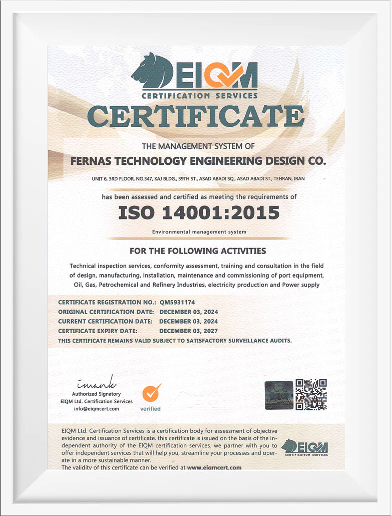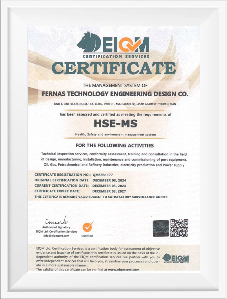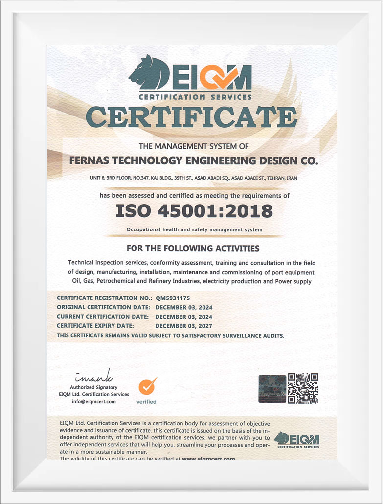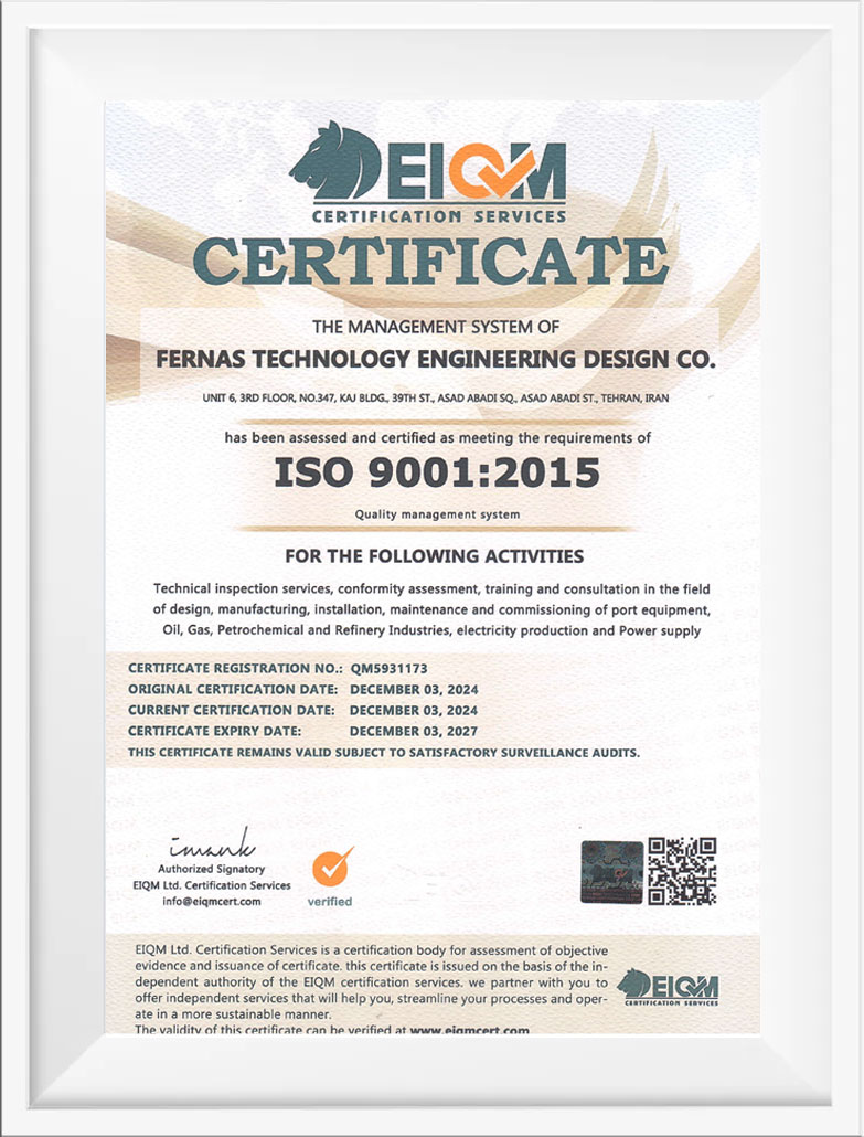 گواهینامه های شرکت فرناس تکنولوژی